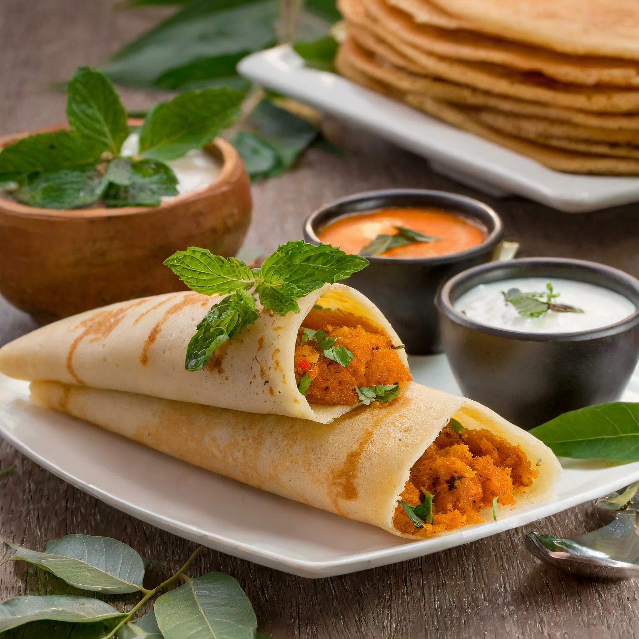 I used this prompt in Firefly: "South indian breakfast Dosa along with chutney and sambar, a lentil soup'