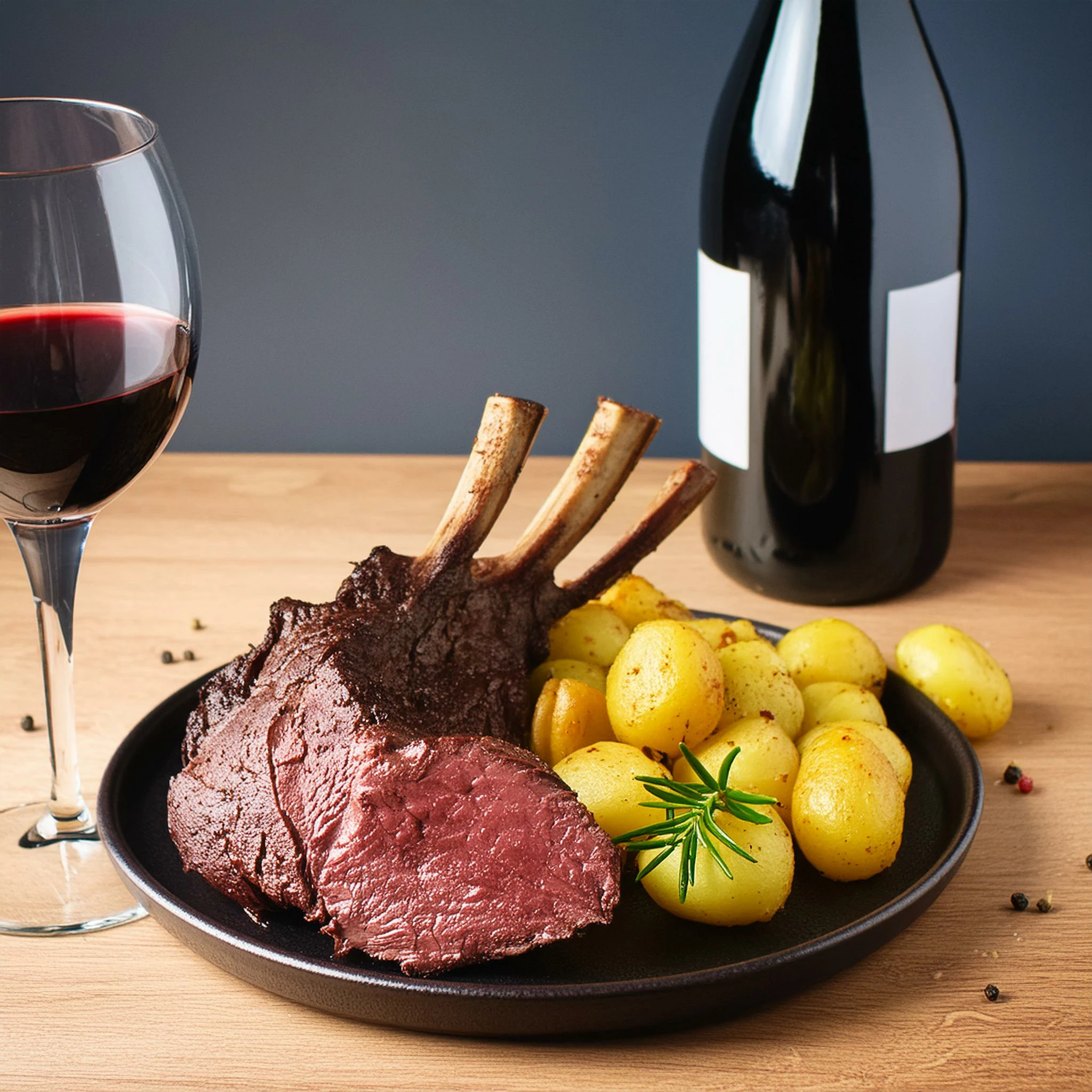 Roast saddle of venison. Roast potatoes.