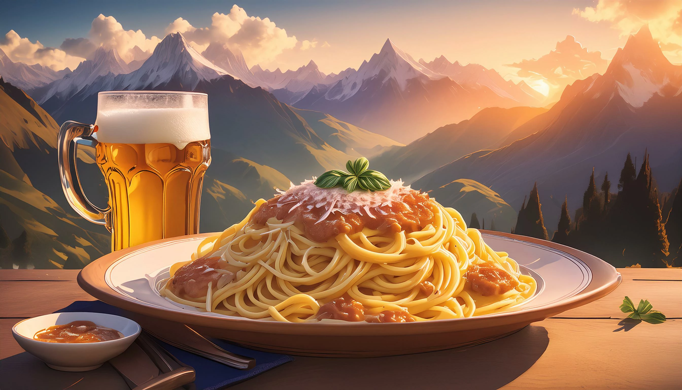 Pasta Carbonara with a non-alcoholic beer