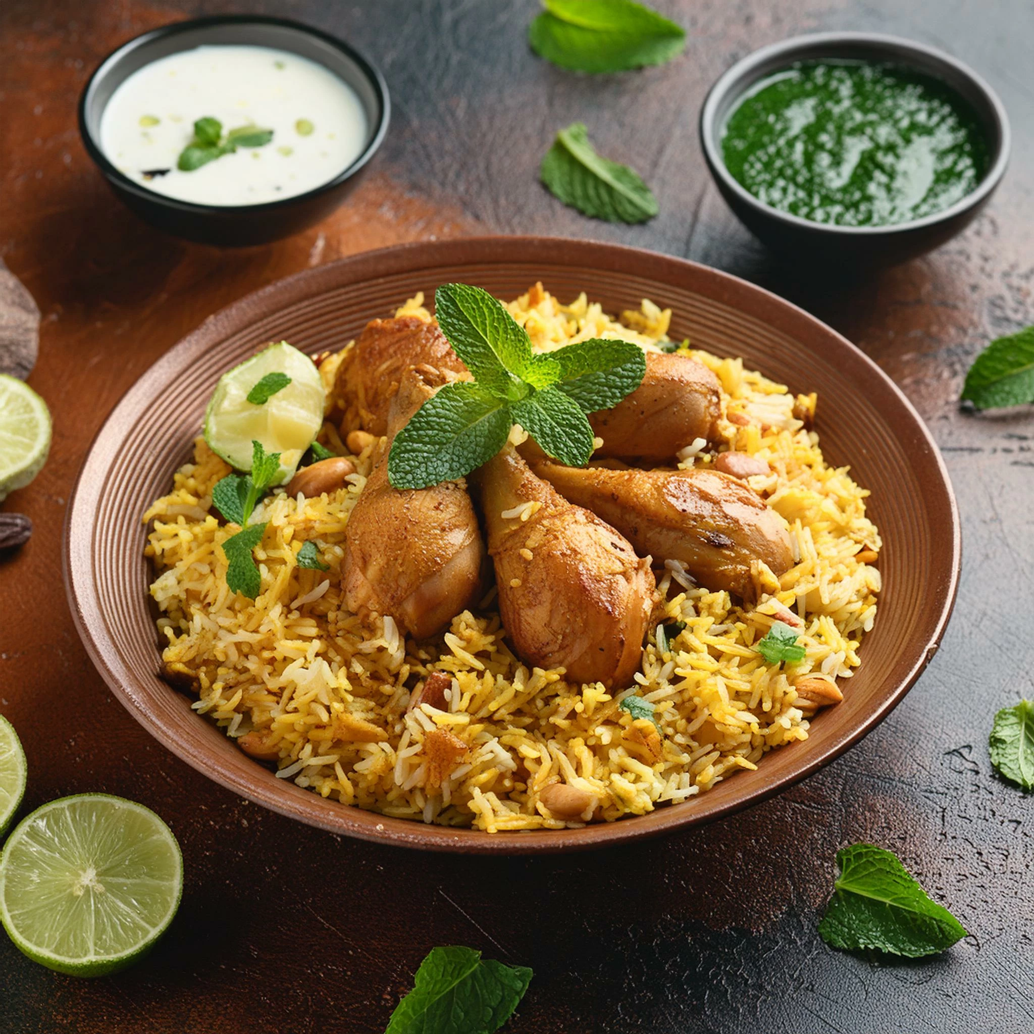 Chicken Biryani with mint sauce