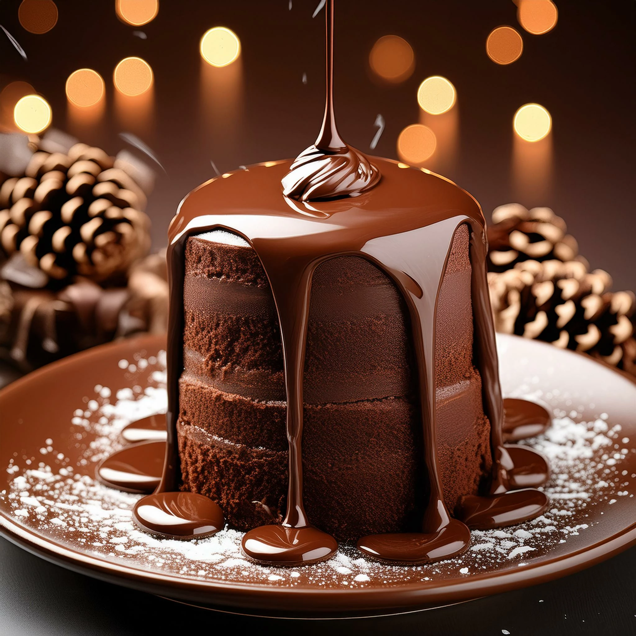 Prompt: chocolate cake streaming of chocolate
