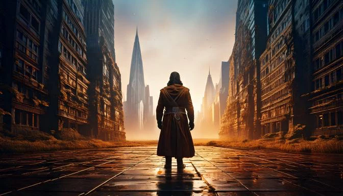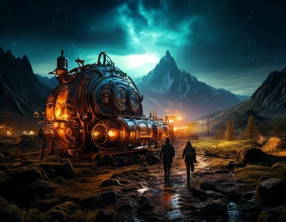 Step into the time machine and embark on an epic journey through time! Create an image that blends two vastly different eras—whether it’s the distant past colliding with the distant future, or a twist on a historical moment where time itself is broken.