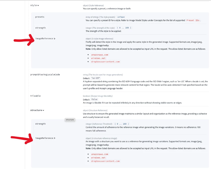 The API reference is located at: Adobe Firefly API - Firefly Services.
