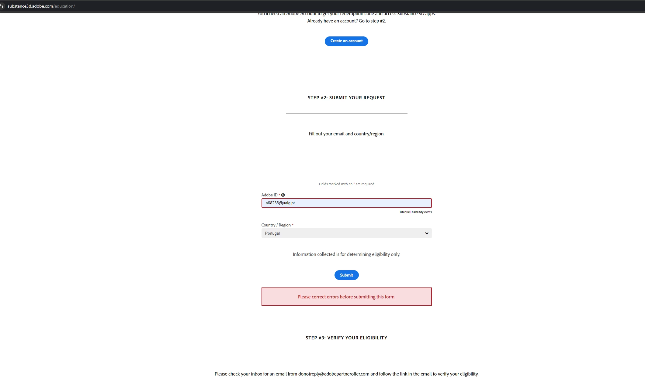 I've tried to get the student license for Substance Painter, but it didn't work. At first I tried to fill the form with the email address that was used to create Adobe account, but it said I typed invalid UniqueID and asked me to correct errors before submitting the form. The problem is I didn't get any email back. I've checked my inbox multiple times, there is no message neither in received nor spam.
