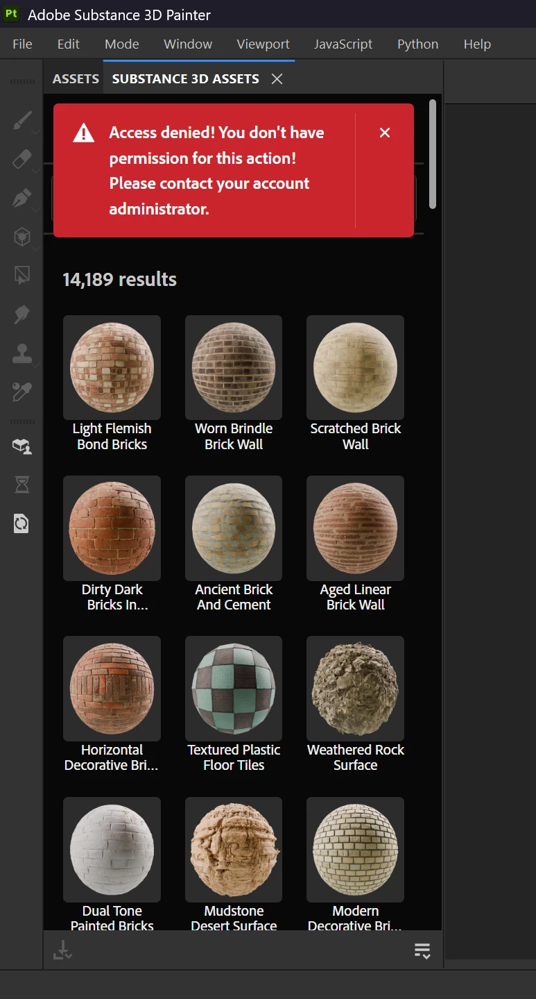 Hi @JustinRhinehart , my apologies for the frustration. I will look into this. Can you please confirm that you are logged into Painter using the same account you have used to purchase your subscription? And, are you able to download assets directly from the Substance 3D Asset website directly? https://substance3d.adobe.com/assets/
