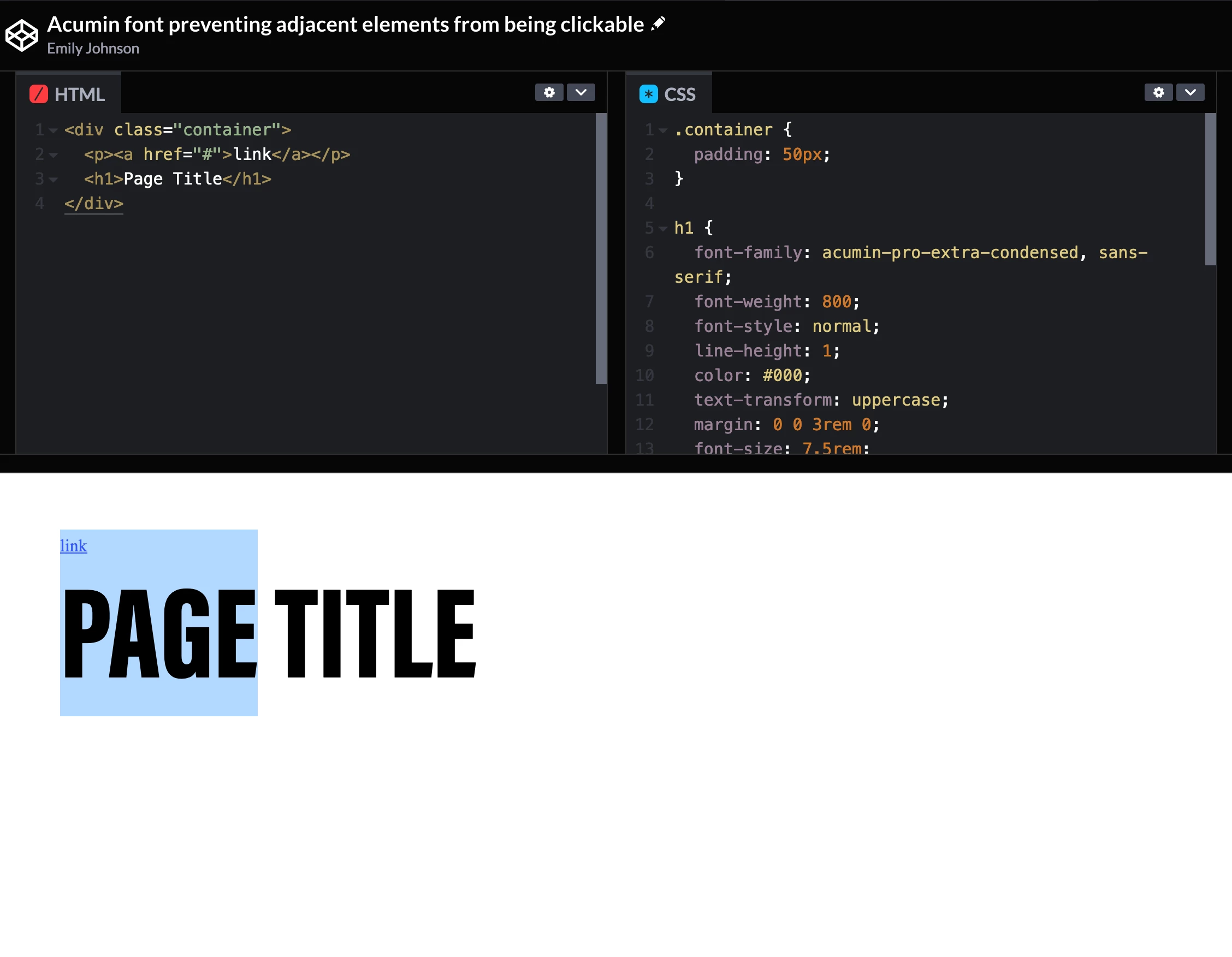 I'm running into a strange issue with Acumin Pro ExtraCondensed Black. The font is preventing adjacent elements from being clickable.