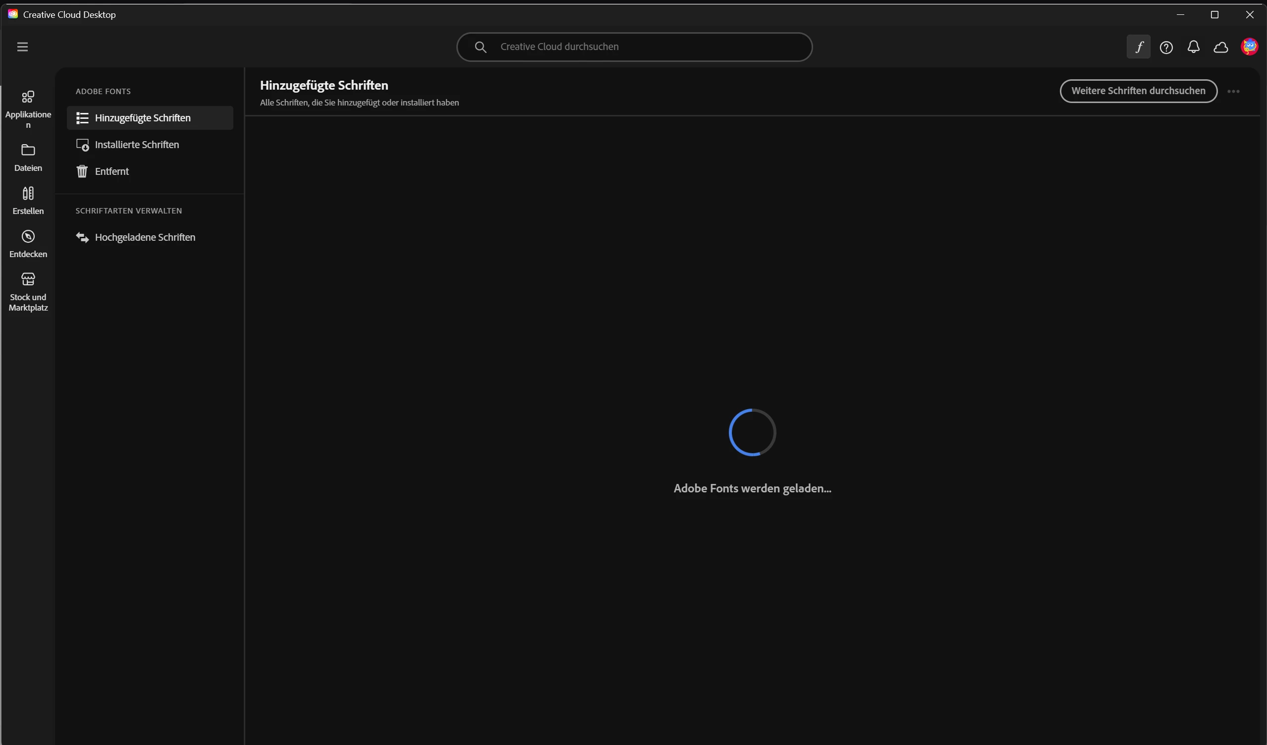 Adobe CC "Adobe Fonts werden geladen..." dauerschleife.