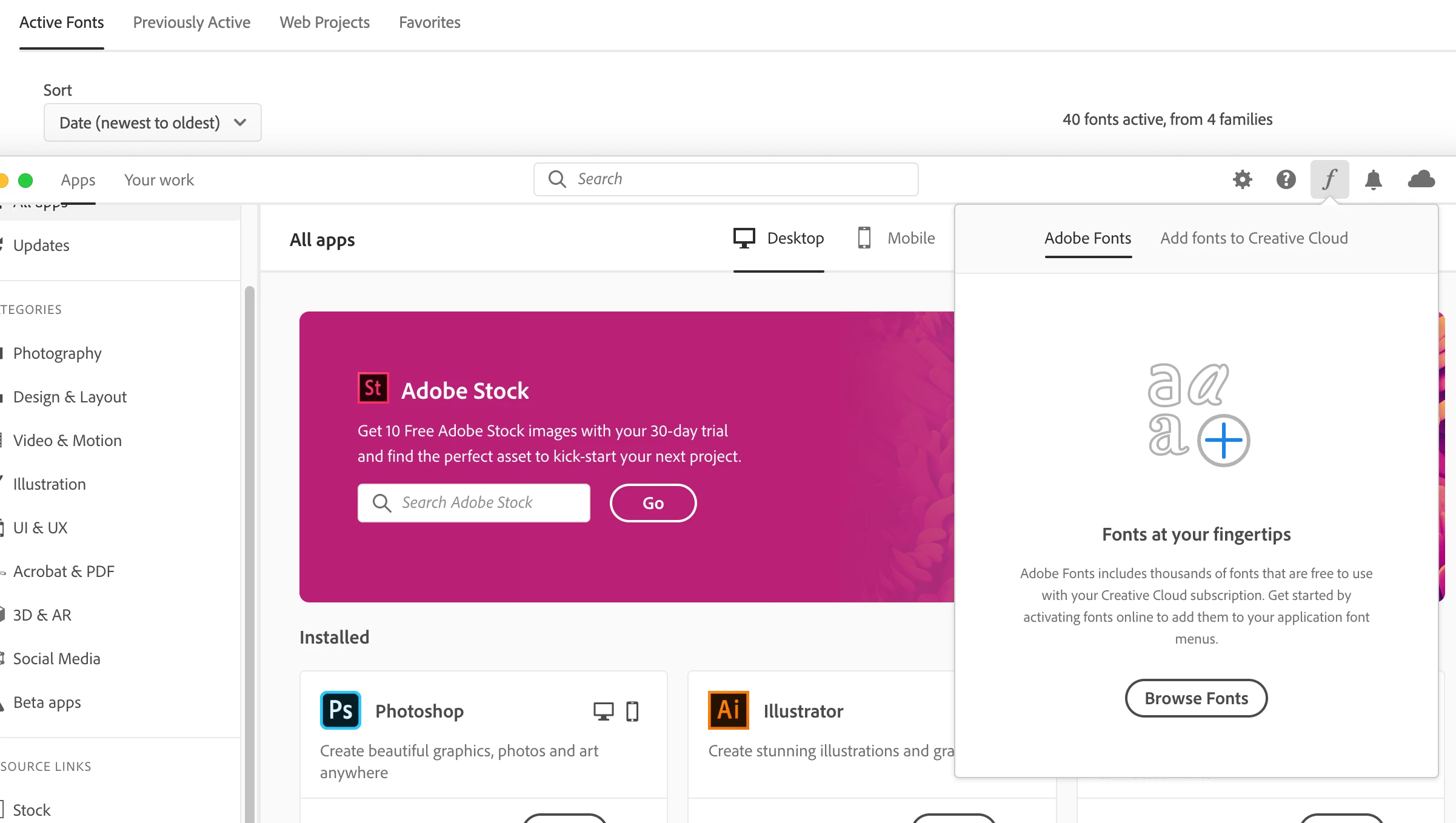 Adobe Fonts with Creative Cloud application is still running very slow.