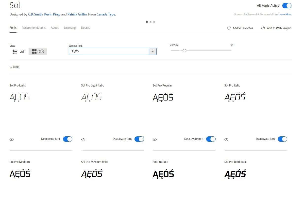 Adobe Font "Sol/Sol Pro" doesn't show polish special characters on my web project