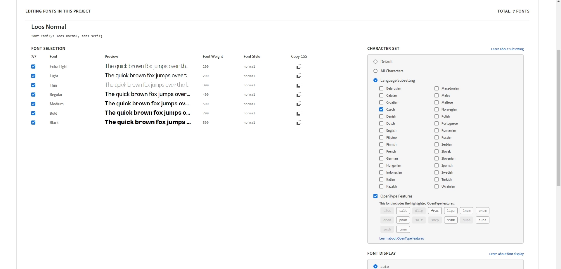 I would like to use Adobe Font Loos which should support Czech language and it does in font preview but it doesn't work in adobe portfolio.