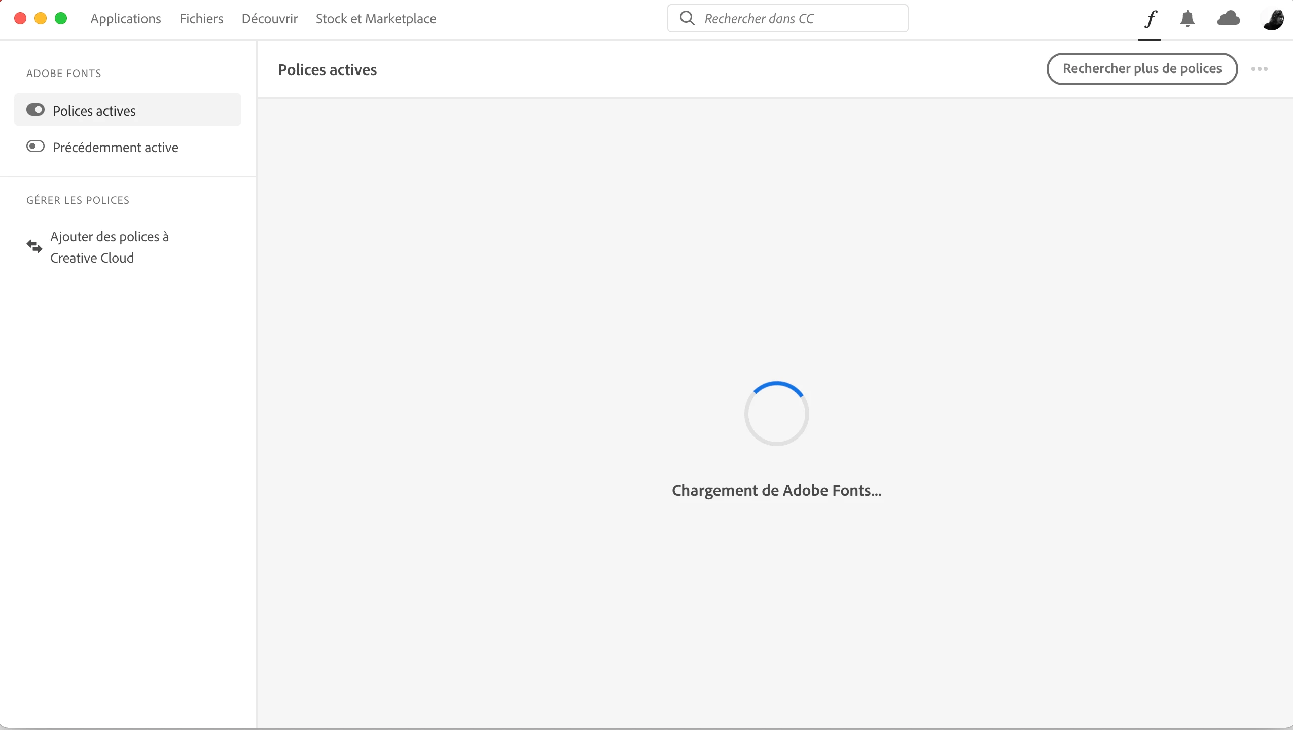 restart programs, restart computer, log out and log in again; nothing helps. Even if all fonts are deactivated in Adobe Fonts, nothing happens. The Fonts section of Creative Cloud app keeps loading forever. When I try to actived the fonts directly in the programs, it continues to load endlessly : I can't use the font. Please HELP! because I am working on a project where I need certain fonts that I don't get active now and therefore cannot continue with my work.
