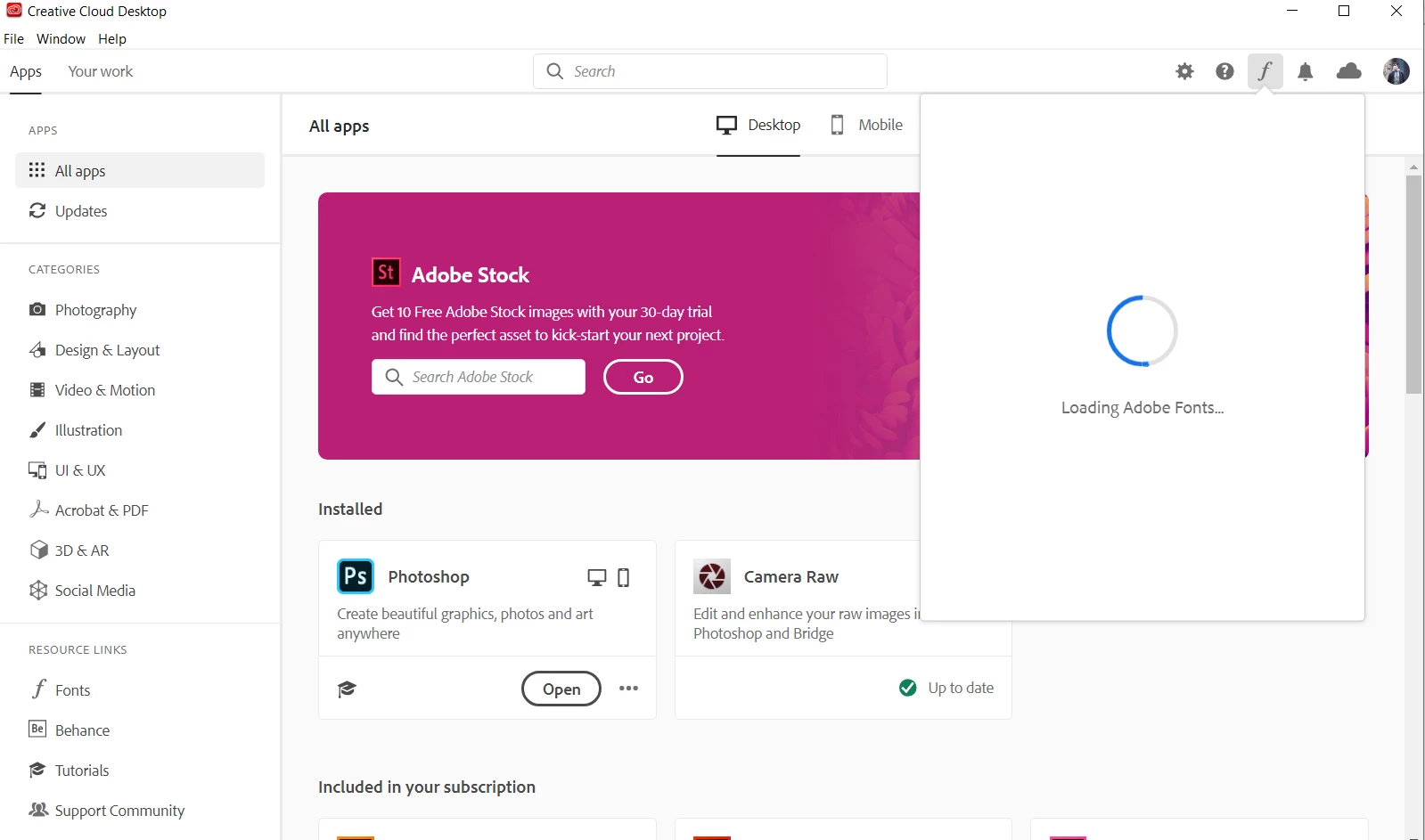 Adobe fonts not loading up on Creative Cloud app.
