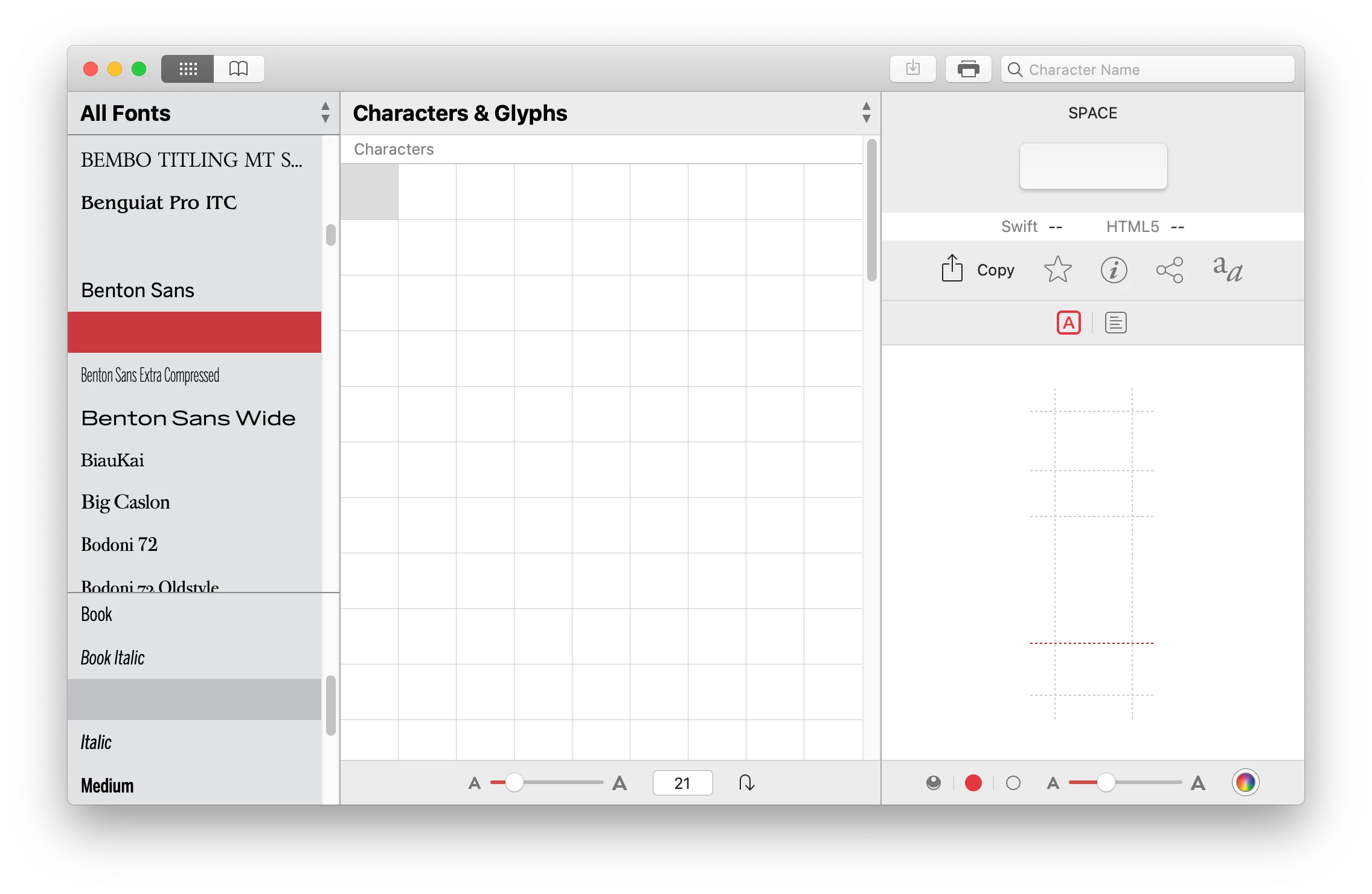 Attached is a third-party app attempting to display Benton Sans Condensed Regular. Another weight of Benton Sans is similarly affected.
