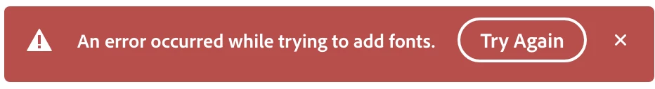 "An error occurred while trying to add all fonts. Some fonts may not be added."
