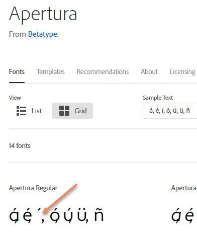 Apertura Typekit font missing the Spanish "í" character in web version