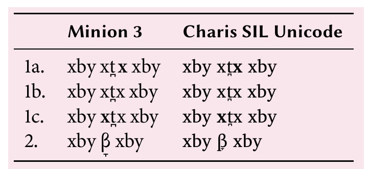 Although I realize it may have been conceived as a stylistic choice, Minion 3's GREEK SMALL LETTER BETA (U+03B2) is almost disturbingly different from the rest of its IPA symbols. It looks almost cursive, and it certainly stands out and calls attention to itself. So much so that the first time I used it, I though I had selected the wrong character -- perhaps something taken from a cursive Greek font, in fact.