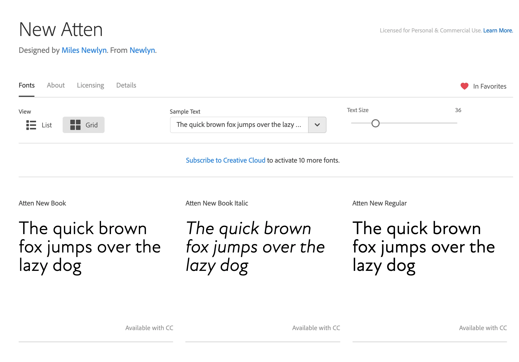 I am a CC subscriber trying to actiate the font "New Atten" from Adobe Fonts. I can add the font to my favorites, but their is no button to activate the font. There is however a link that states, "Subscribe to Creative Cloud to activate 10 more fonts. "