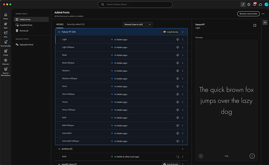 Can't figure out how to turn on fonts in Creative Cloud...