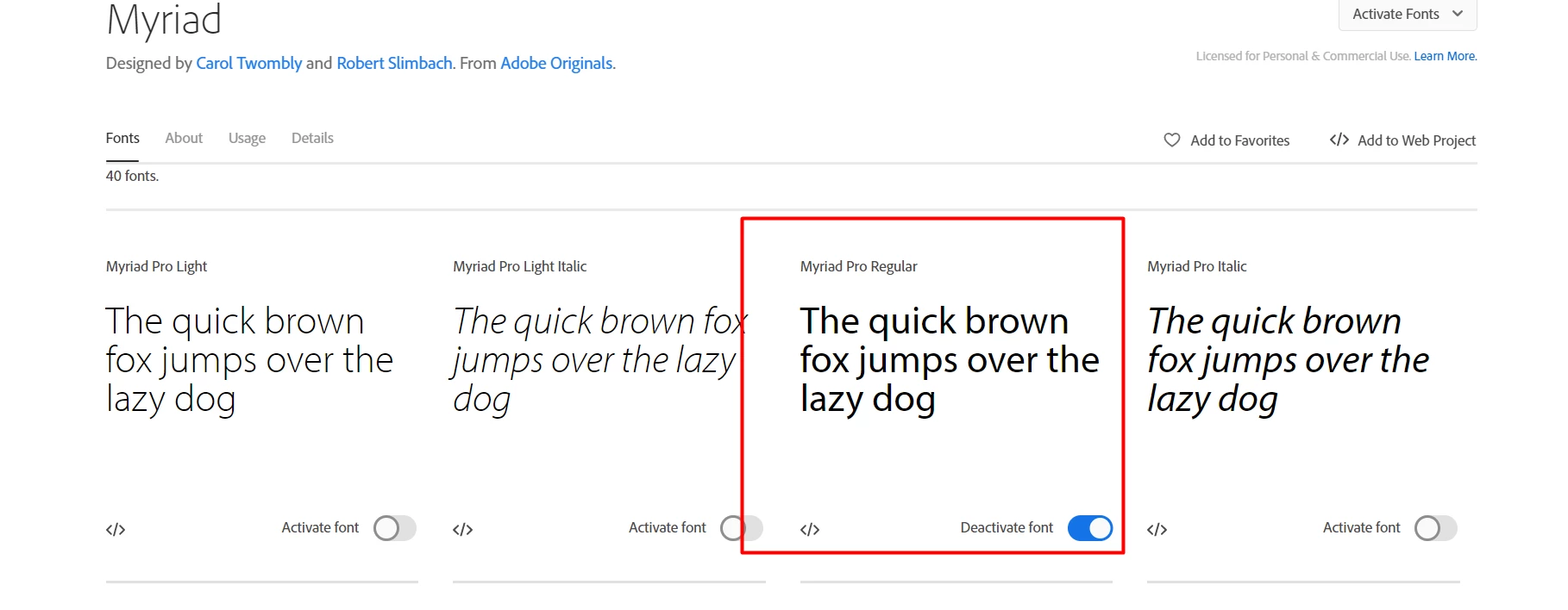 When I search for MyriadPro Regular, it shows up when i'm not logged in. But as soon as I log in and search for it, I can't find it. Any Suggestions?