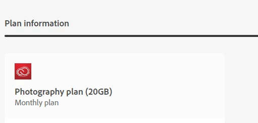 But I am currently on a Photography Plan. Here is a screen grab of that on my Account Overview page.