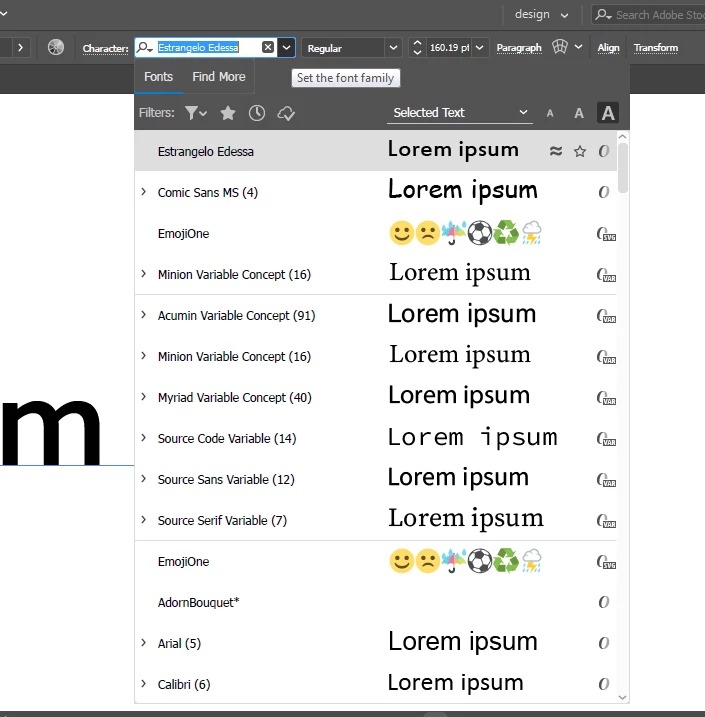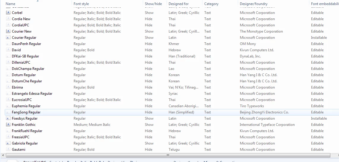 So i notice that adobe have some pre-installed fonts like emoji one, myriad, marlett etc (i put the screenshot below). I'm not really sure if all of it was pre-installed adobe or windows. I'm currently using windows 7, and when i look for some fonts like emoji one, it's not on the windows installed font list.