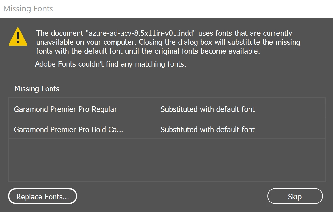 Dialog Box Not Asking if I Want to Sync Missing Fonts
