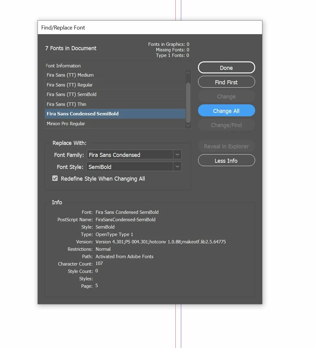 Fira Sans Condensed SemiBold is coming up as "OpenType Type 1." It's creating errors with the printer. They won't allow any type 1 fonts anymore, and we need this design to be approved by the printer for the upcoming issue. I am not sure where else to report this. I looked at the path in Indesign, and it says, "Activated from Adobe Fonts" so it's not our computers...