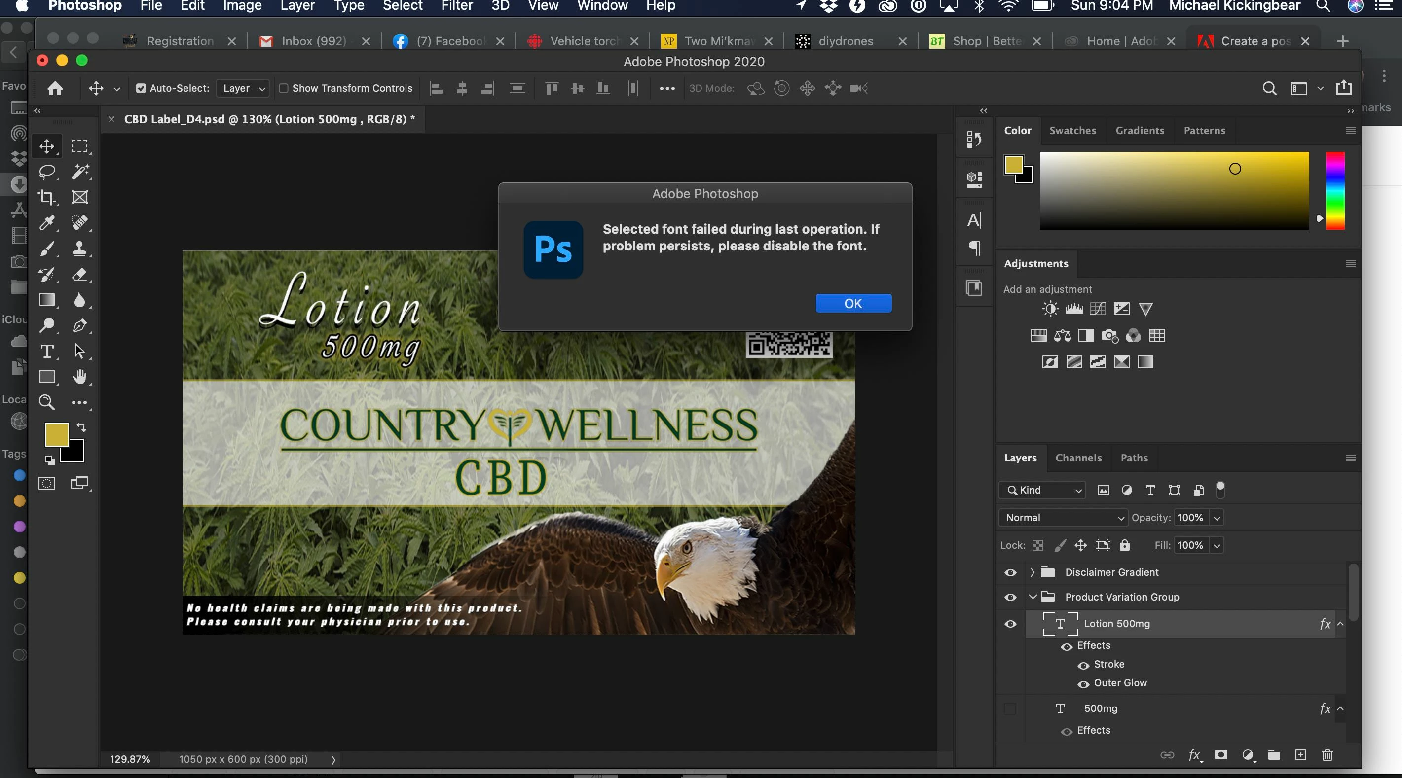 The above image contains an error that I do not know how to resolve. I had never used "Adobe Fonts" before. It was formally called "Type Font". I decided to look for a new font for the project in the picture. After I finished the composition, I attempted to save the project, and now for some reason, I cannot save the project. It only tells to me possibly disable the font that is really not an option as there is further work that I need to do on the design, including alternatives that include the font we have chosen.