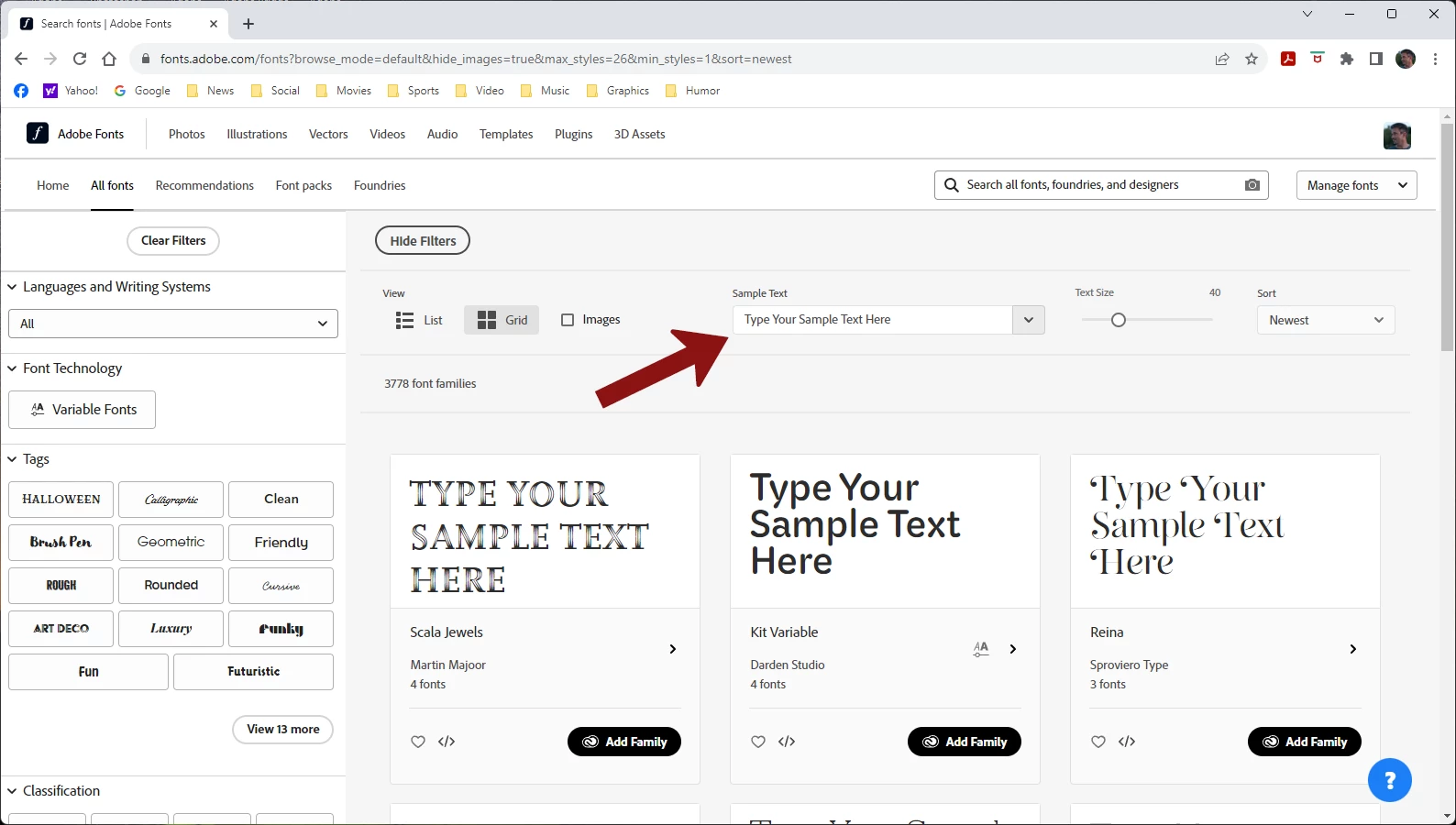 Font examples in Creative Cloud