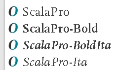 I enabled the Scala Pro font to use it in a document, which I wrote with MS Office Word (2016). The font correctly displayed on my system after enabling it, however, when I look at the font menu in most applications (not Adobe CC ones, though), all the styles show up as separate fonts: