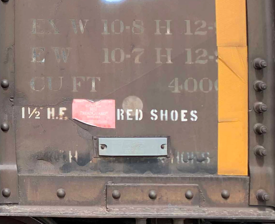 I'm searching for a font used on some Chicago Northwestern railroad cars. I don't know the name of the font, or if it's even available to download on Adobe Fonts. Here's a photo (just the top 3 lines of text). This railcar was built in 1976. Thank you.