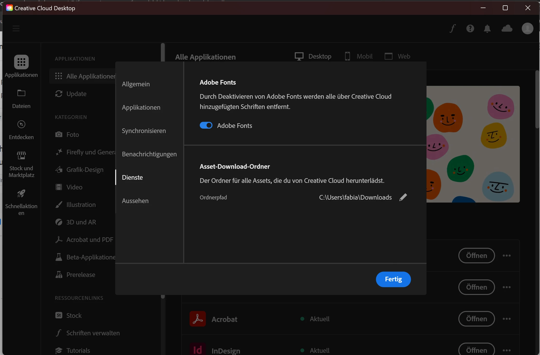 If i activate any font on the Website it says that it was activated as it should be but in the Cloud-App nothing changes. I only have this problem on my Laptop, on my PC at home everything works fine...