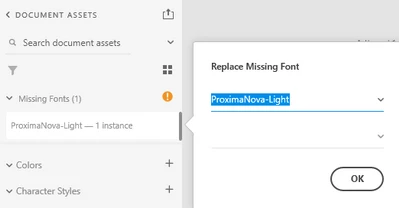 For example I have a font on my system (not Adobe CC font) Proxima Nova. This has the full range of weights. In the Illustrator file fonts are showing as they should. When I open the file in XD most weights of this font are showing but "Light" is missing (for some reason) When I try to replace the missing font the replacement dropdown is greyed out