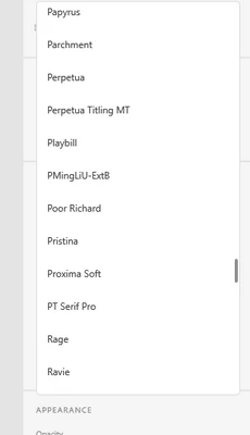 If I want to use "Proxima Nova" somewhere else that font is missing from the menu:
