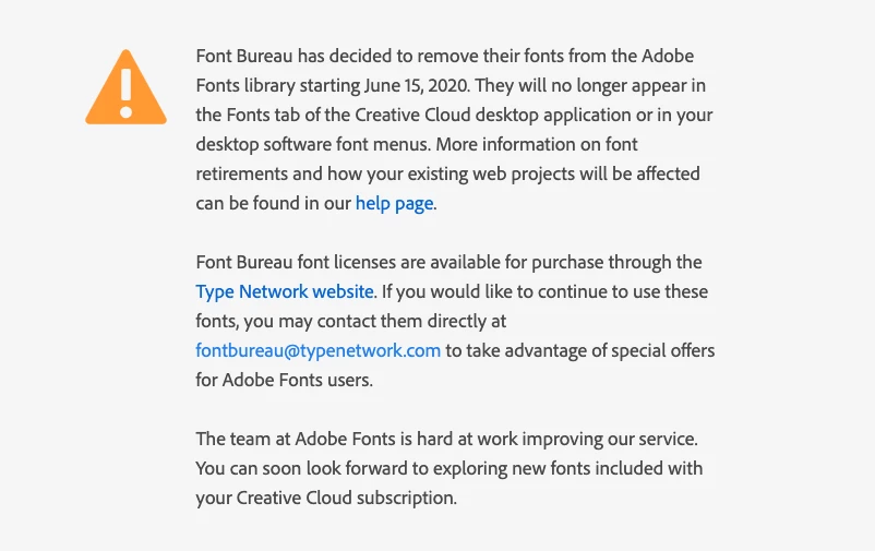 In regards to the notice of fonts being removed on June 15, 2020, can a list be published to see which ones will no longer be available? It would be nice to have advance notice rather than having to find an alternative at a moments notice.