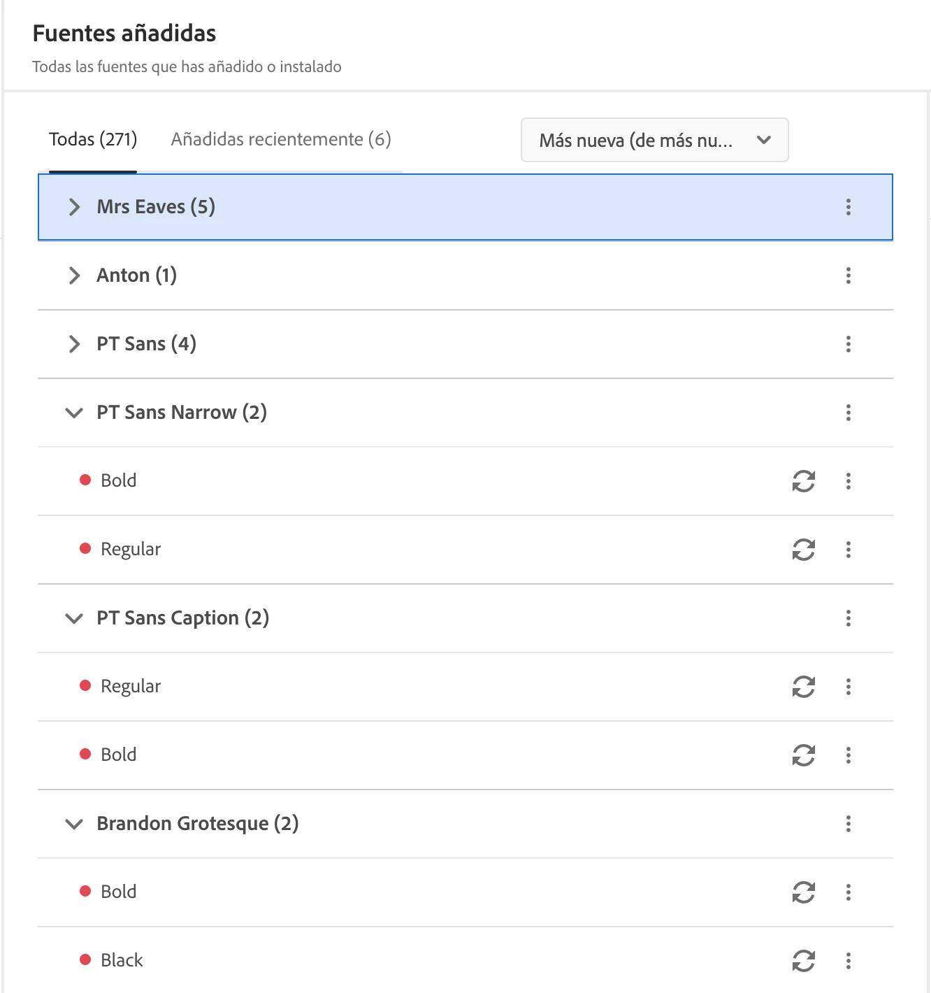 Desde hace unas semanas tengo un problema con la sincronización de las fuentes añdidas a través de Administrar Fuentes de Adobe. El problema es que solo se me cargan 271 fuentes de las 1300 que tengo realmente instaladas.
