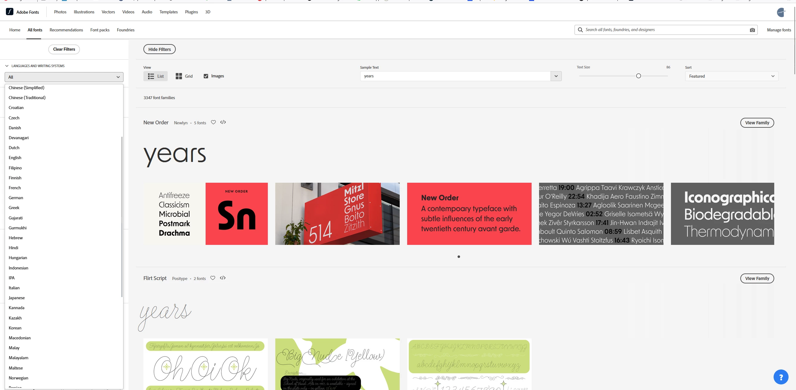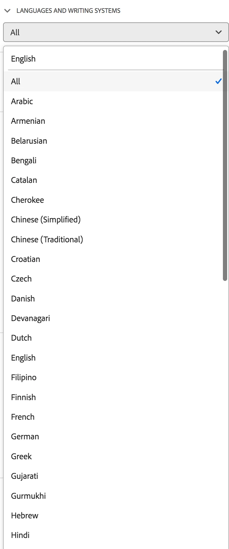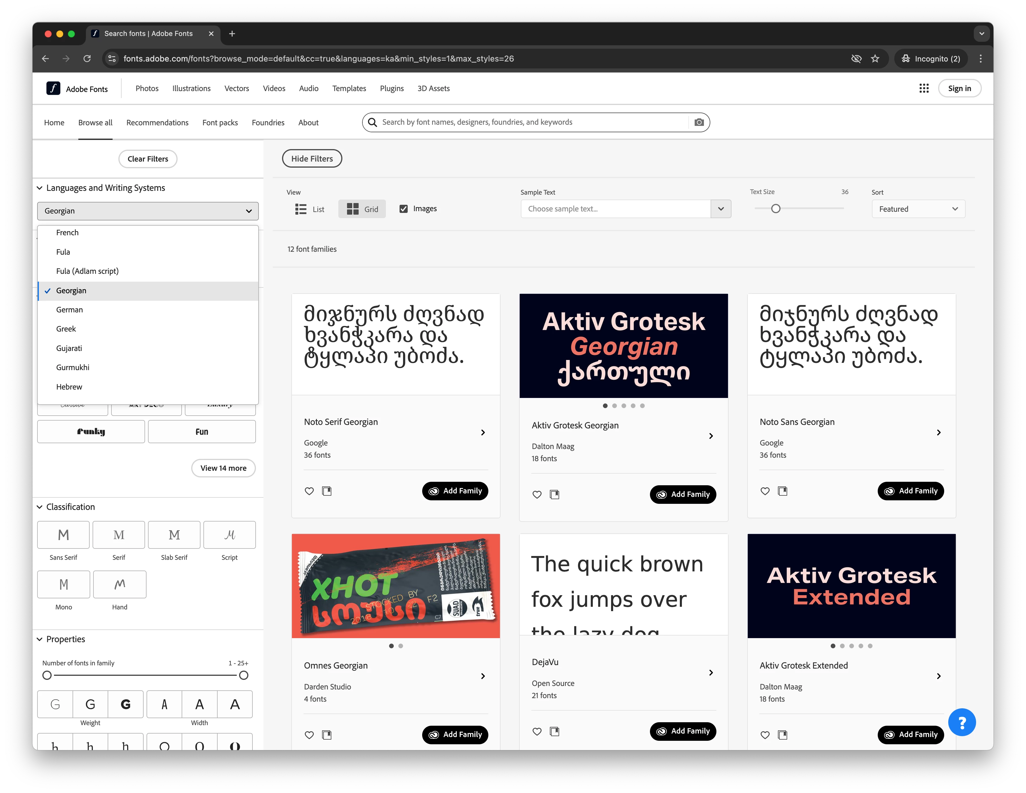 I like to use Adobe fonts but I couldn't find a way how to list Georgian fonts. Is there a practical way to do this like for other languages?
