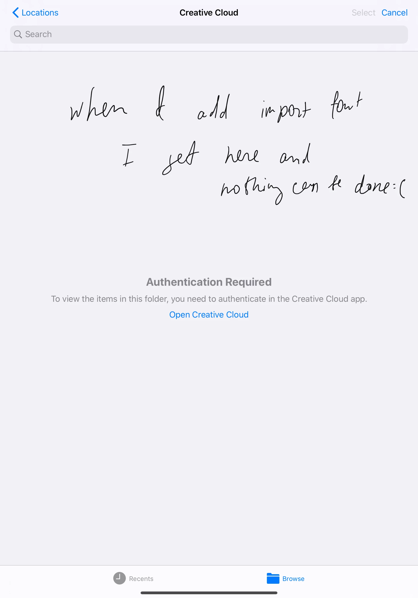 i tried to add font in Procreate but hit the wall when it brings me to cc authentication and nothing happens😒