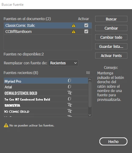 I've been trying to install Classic comic font from Adobe Creative Cloud but it has been impossible. I activated this font from Creative Cloud fonts but when I open Illustrator it seems like I wouldn´t had do it so I tried to activate it from Illustrator and it shows me an error.