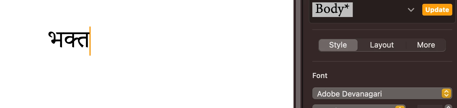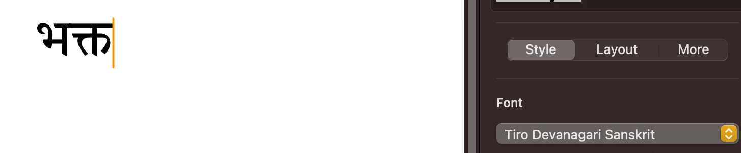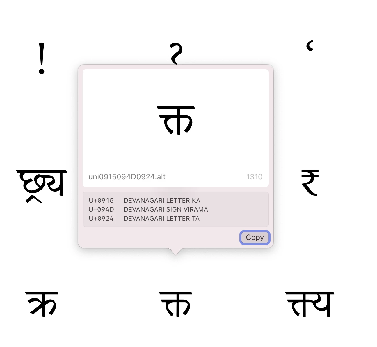 I like th texure and ligatures of the font, adobe devnagari, but however I am sad to report that much characters do not appear correctly. For example, the character does not appear even if it is the the reportire,