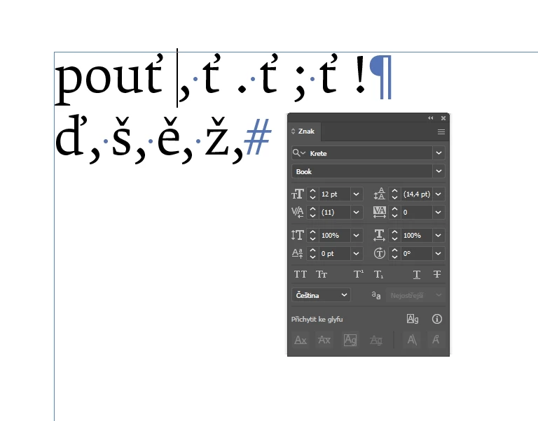 In font Krete Book is kerning bug in glyph ť (czech language).