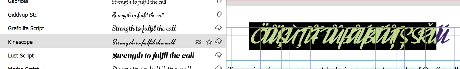 I successfully used Kinescope on a title in the previous issue of the magazine I design. I thought I might use it again, but this time something is acting very weird. The preview in the font pulldown renders correctly, but the text itself is all messed up. Here's a screenshot:
