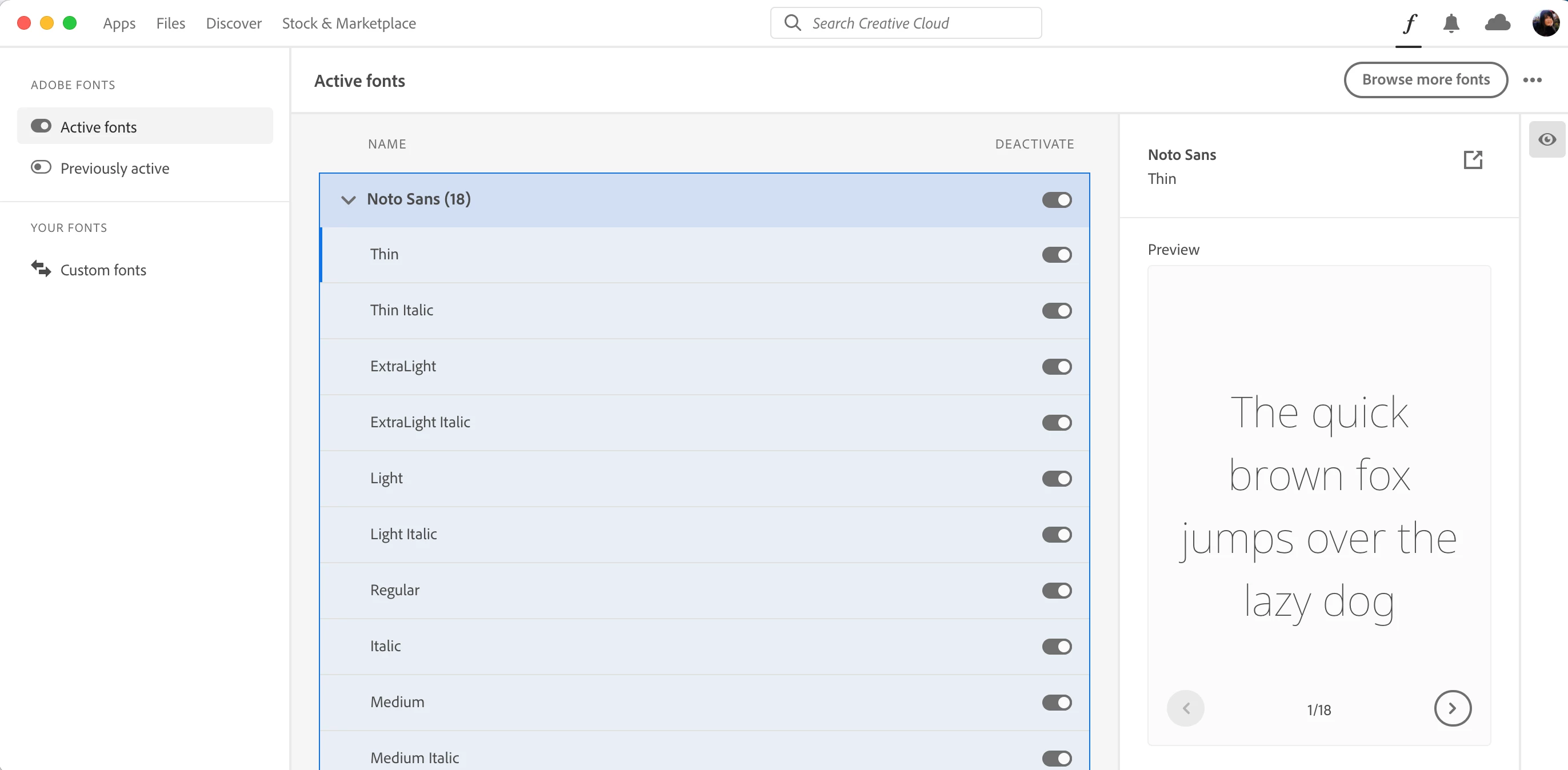 My Creative Cloud doesn‘t have the font menu