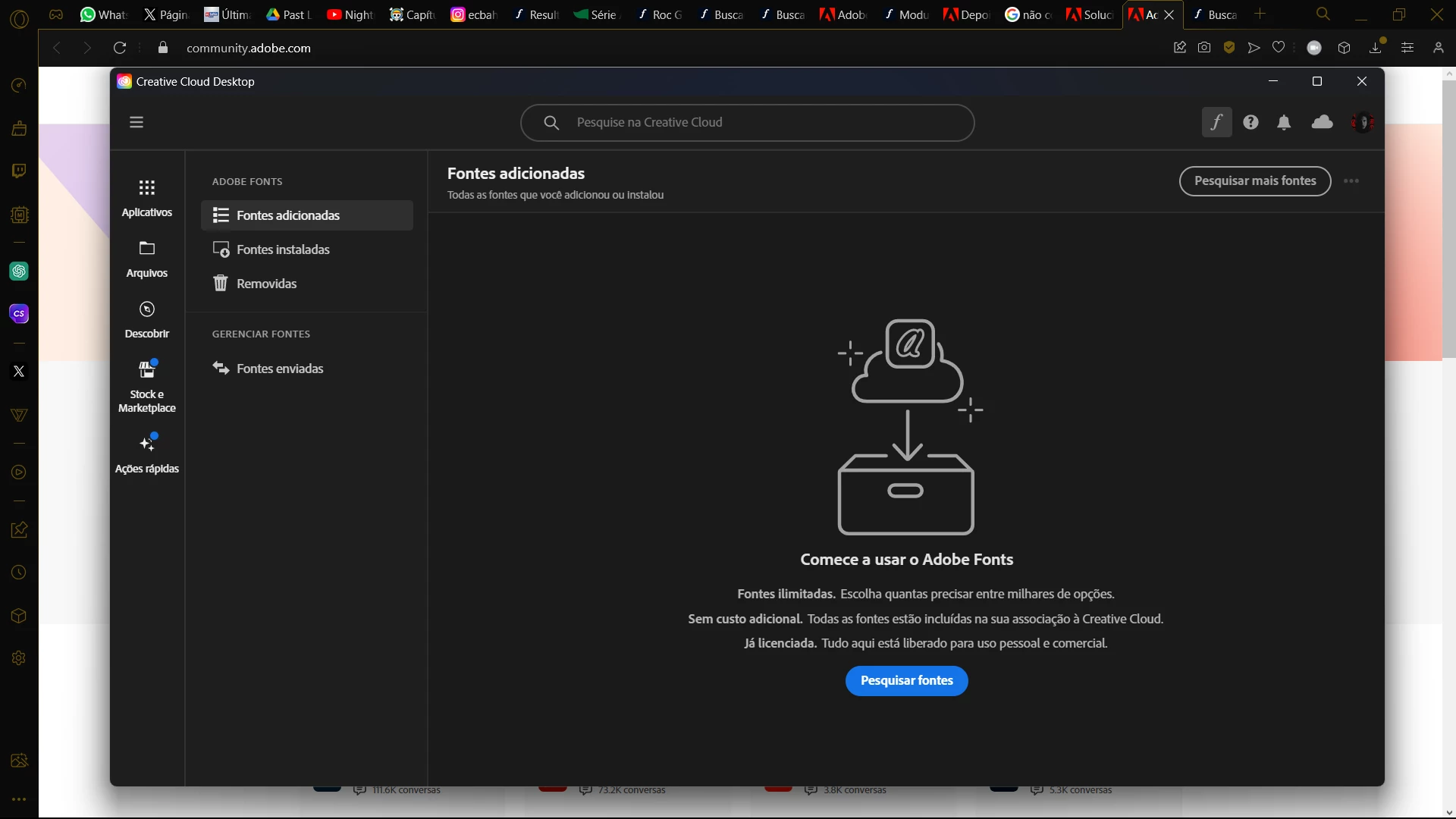 Hi guys. I'm facing a very annoying problem because I have a deadline to face and I can't use my fonts in the projects I need because all the fonts I had have disappeared from Adobe Fonts and all other Creative Cloud applications. On the Adobe website the fonts are as if they had been added, there is even a "remove font" button, but none of them appear in the applications, not even the new ones that I try to add. Only the fonts from the Windows system itself are working.