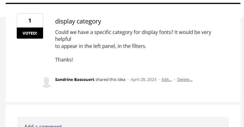 Is there a way to search for display fonts on Adobe Fonts? I can't see any category for it.