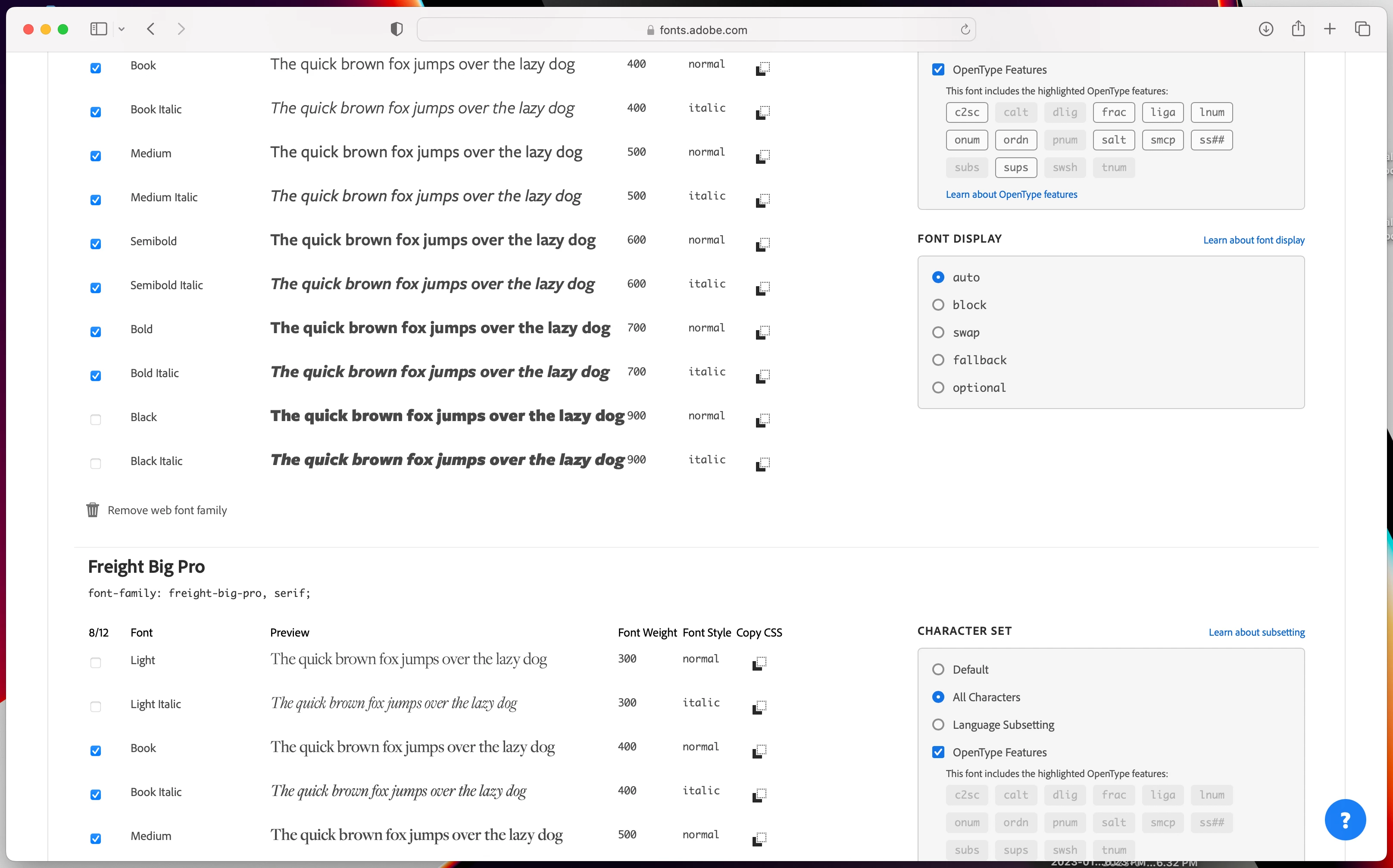Not all fonts weights will activate in web folder