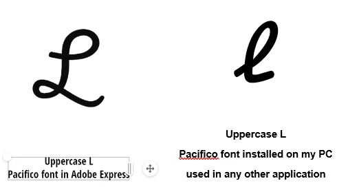 Pacifico font upper case L is different in Photoshop than it is in Adobe Express