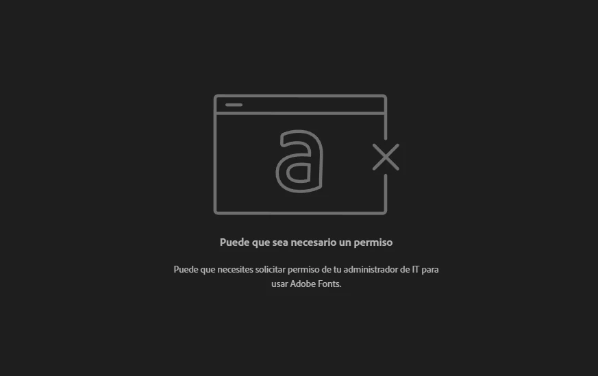 "Puede que necesites solicitar permiso de administrador de IT para usar Adobe Fonts"