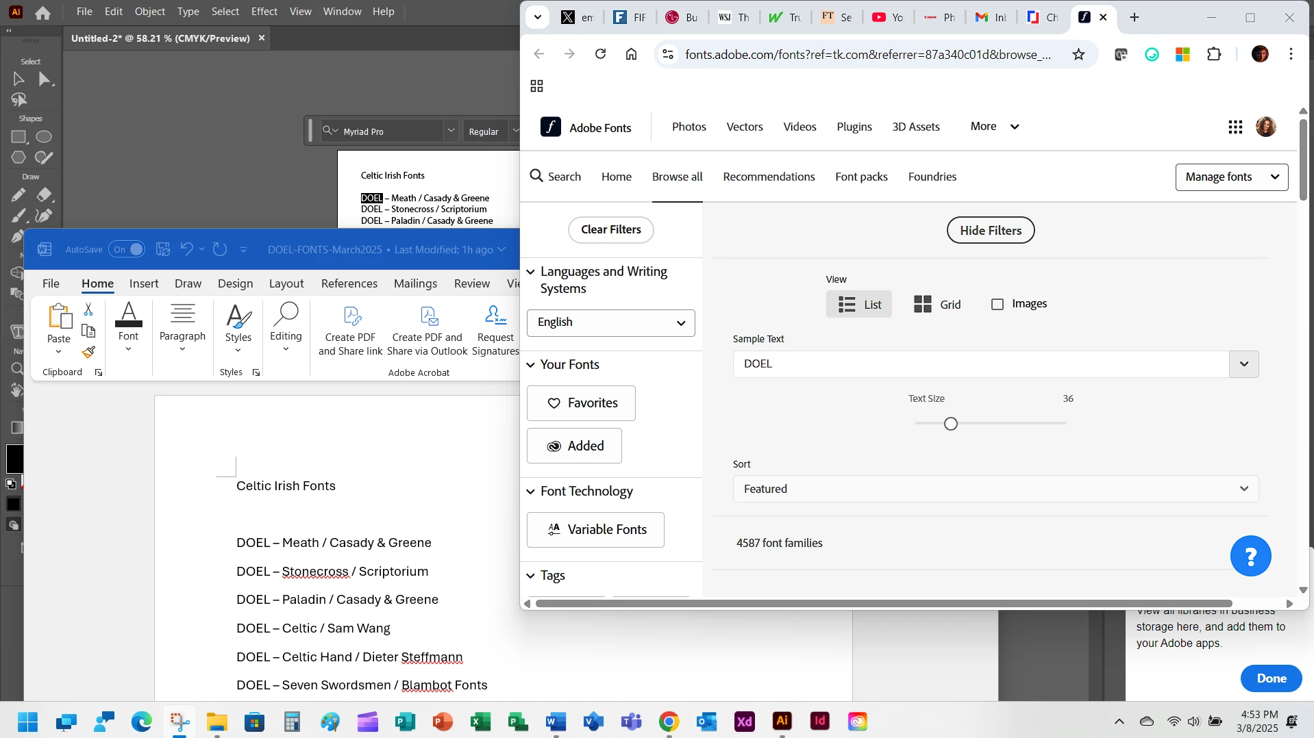 My irish list now has 130 fonts types so I can make it easy for the client to select so I can start the work.