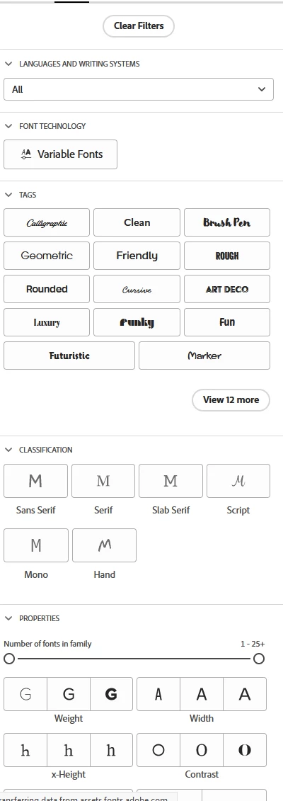 When you go to Adobe fonts, click on the "browse all fonts" box, and then you'll get that panel showing on the left